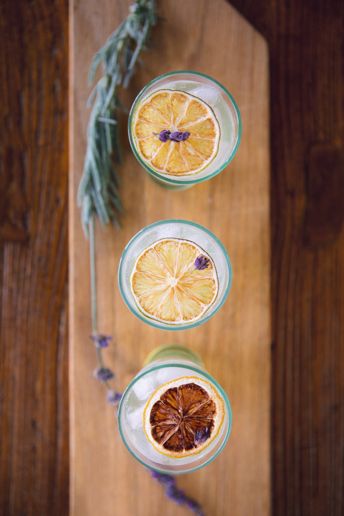 Fill glass with ice,  ½ with limeade mix , other ½ sparkling water. Garnish with fresh lavender sprig & citrus wheel.